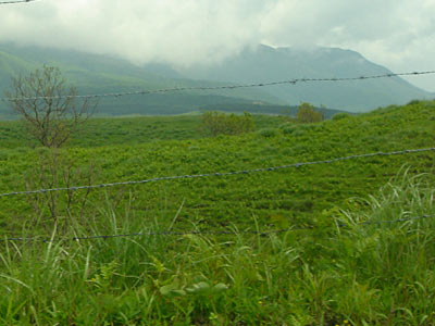 途中から草原になって、さえぎるものがなくなると、九重阿蘇が一望です。